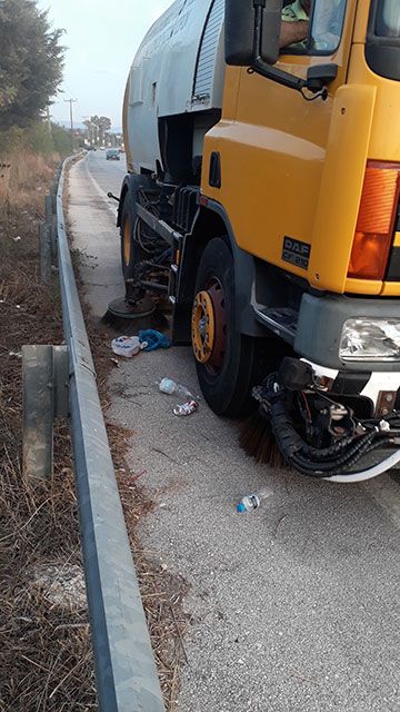 Ειδικότερα, έχουμε εξοπλίσει το στόλο των οχημάτων μας με σύγχρονα οδοκαθαριστικά οχήματα, προκειμένου να μπορούμε να απομακρύνουμε από κεντρικούς και μη δρόμους τα απορρίμματα που συσσωρεύονται συνήθως στην άκρη του οδοστρώματος.
